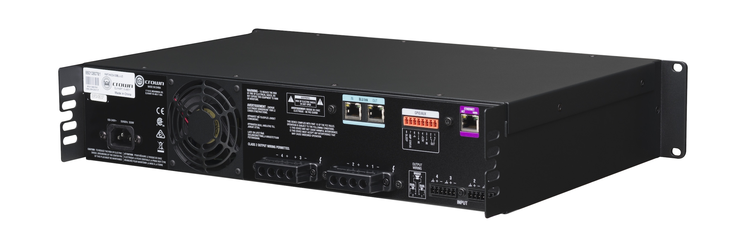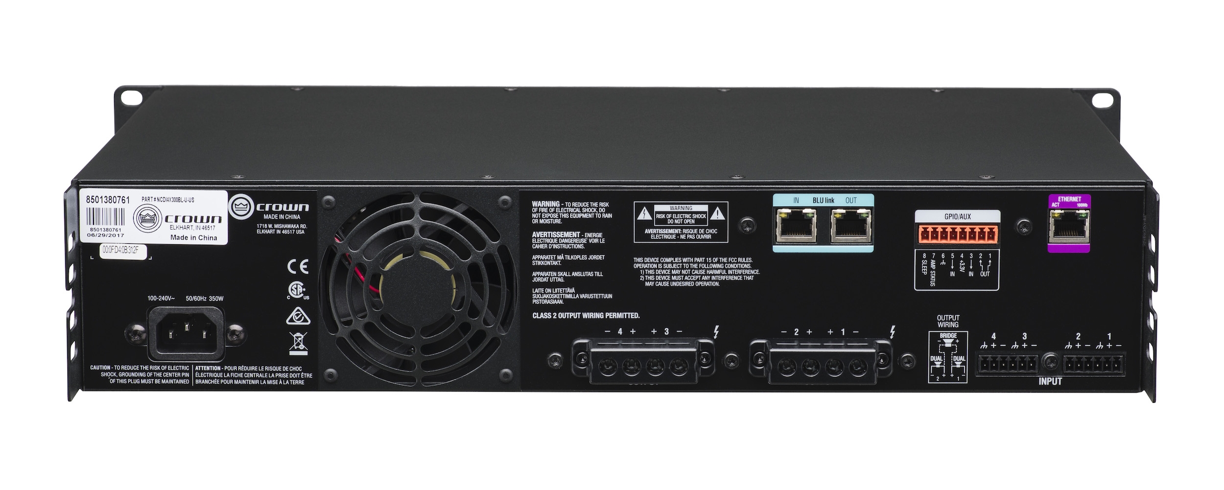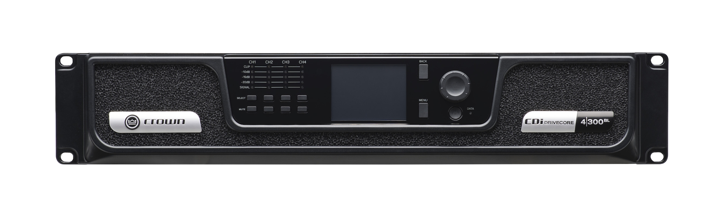 Τελικός ενισχυτής τεσσάρων καναλιών 4x300W, με δυνατότητα λειτουργίας σε φορτία 2Ω/4Ω/8Ω/16Ω/70V/100V. Τεχνολογία DriveCore.