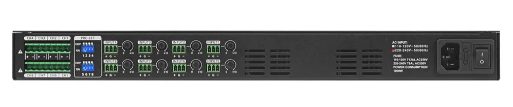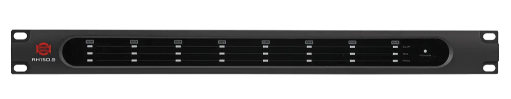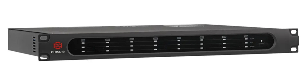 Show AH150.8 επαγγελματικός Class D ενισχυτής 8 καναλιών ισχύος 8 x 135W στα 100V (RMS) και απόκριση συχνότητας 100Hz - 15kHz (+0/-3dB). Ο ενισχυτής μπορεί να λειτουργήσει στα 70V ή 100V RMS, διαθέτει phoenix connectors για τη σύνδεση των εισόδων και της εξόδου. H τοπολογία Class D διασφαλίζει την χαμηλή θερμοκρασία του ενισχυτή κατά τη λειτουργία του. Ο AH150.8 είναι κατάλληλος για επαγγελματικές εφαρμογές και εγκαταστάσεις όπως εμπορικούς χώρους, γραφεία, αίθουσες συνεδριάσεων κ.α.