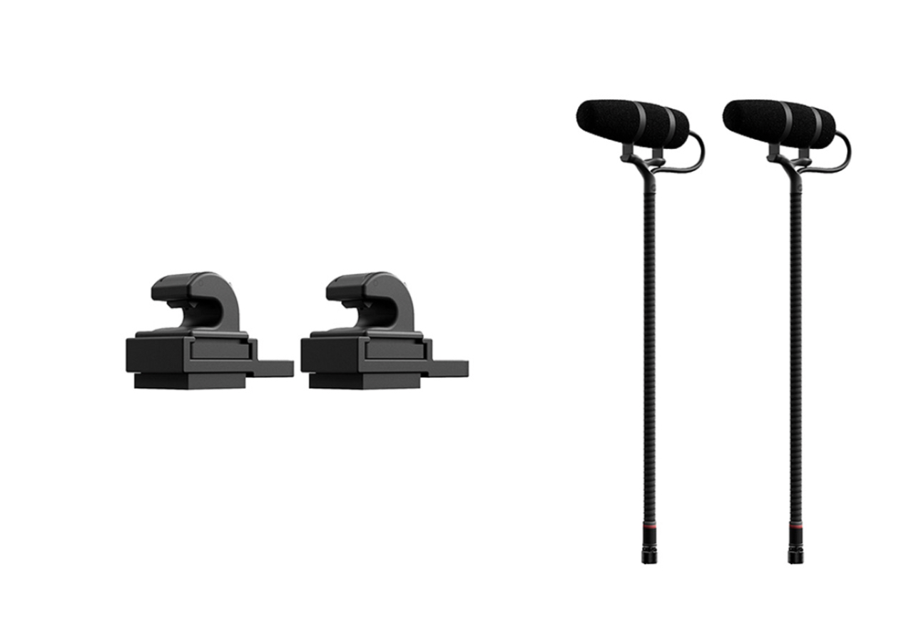 - Includes windscreens, mounting clips, cables, and protective carrying case