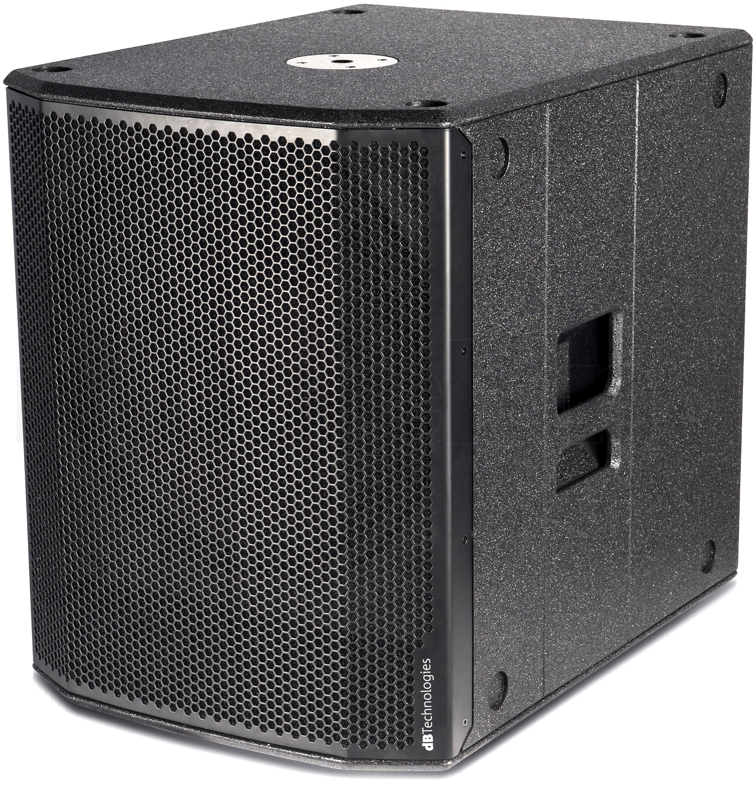 The series comes with a full grille design in a lightweight wood cabinet (total weight 31kg /68 lbs) strengthened with a hardwearing, scratch-resistant black covering. Carved side handles enhance portability. The design of the top side eases subs stacking in larger systems and features a M20 pole mount thread to stack full-range speakers.