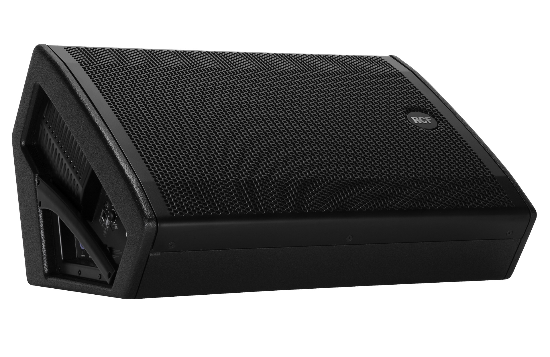 The NX 15-SMA can be also used as a portable PA system, thanks to the rugged powder coated steel pole mount installed on the side. In order to control the response of the speaker in such different applications, RCF has incorporated two special Equalization Modes:- Floor, for stage monitoring; Free Field, for the use of the speakers as a stand-alone PA system.Cabinet is made in Baltic Birch plywood, finished with an extremely resistant paint for an extensive use on the road.An ergonomic side handle, integrated with the input panel, is provided for an easier transport of the speaker.