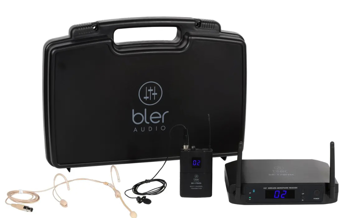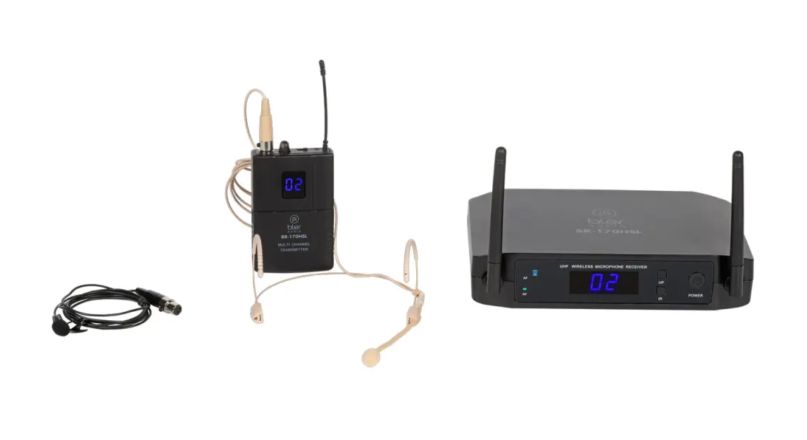 Bler Audio Mono BR-170HSL, ασύρματο σύστημα μικροφώνου με πομπό τύπου body pack, 16 συχνοτήτων, το οποίο περιλαμβάνει δέκτη, μικρόφωνα πέτου και κεφαλής που συνδέονται με mini XLR. Το body pack λειτουργεί με 2 αλκαλικές μπαταρίες ΑΑ και και η ωφέλιμη εμβέλεια είναι 50m και διαθέτει οθόνη ενδείξεων. Οι διαθέσιμες συχνότητες κυμαίνονται από 863-865MHz (UHF). Ο δέκτης διαθέτει οθόνη ενδείξεων LCD στο μπροστινό μέρος. Η σύνδεση μεταξύ πομπού και δέκτη γίνεται γρήγορα και εύκολα μέσω IR (υπέρυθρες) Το σύστημα μικροφώνου είναι κατάλληλο για μικρούς χώρους και σκηνές, εταιρικές εκδηλώσεις ομιλίες αλλά και για διασκέδαση.