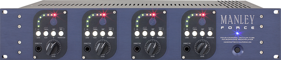 O νέος τετρακάναλος λαμπάτος προενισχυτής μικροφώνων Manley Force Quad Mic Preamp απο την θρυλική Manley  είναι βασισμένος στο περίφημο channel strip  Manley Core.