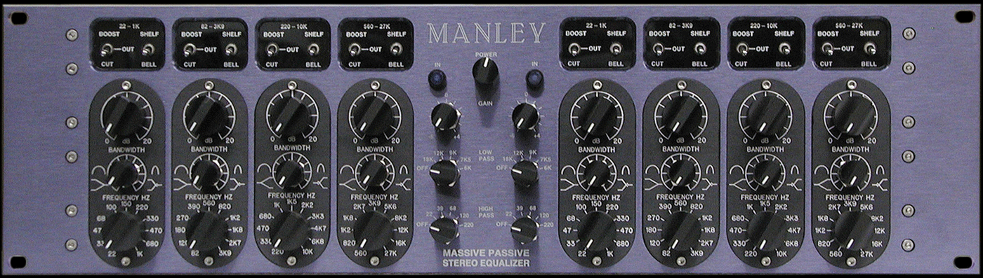 Το Manley MASSIVE PASSIVE είναι ένα κορυφαίο EQ δύο καναλιών, τεσσάρων περιοχών με πρόσθετα high pass και low pass φίλτρα. Το MASSIVE PASSIVE δεν χρησιμοποιεί ενεργό αλλά παθητικό κύκλωμα ήχου για αυξημένη μουσικότητα καθώς και κορυφαία υλικά. Με μεγάλο ήχο, τεράστια δυναμική περιοχή το πλήρως λαμπάτο αυτό EQ στα χέρια έμπειρων ηχοληπτών γίνεται ένα δημιουργικό εργαλείο.