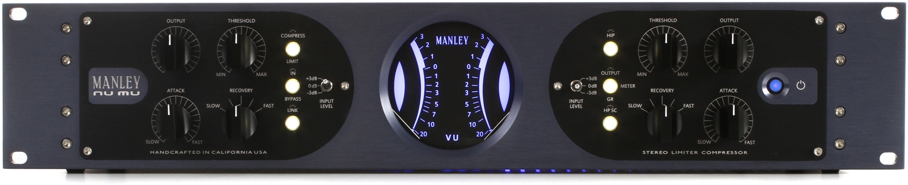 Ο Μanley Nu Mu είναι ένας νέος compressor που προσφέρει τις καλύτερες ηχητικές ιδιότητες συνδιάζοντας λαμπάτο κύκλωμα σε συνδιασμό με transistor. Ενσωματώνει το all-tube, T-bar-mod από το φημισμένο Variable Mu και συνεχίζει την εξαιρετικής ποιότητας αλυσίδα ήχου του. Θα εντυπωσιαστείτε απο τα αποτελέσματα - γλυκός ήχος, ζεστός με πολλές δυναμικές. Το καινοτόμο κύκλωμα HIP είναι ενσωματωμένο στον Manley, ενισχύοντας την λεπτομέρεια σε χαμηλές στάθμες χωρίς να επιρεάζει τις αρμονικές του ήχου. Χειροποίητα κατασκευασμένο στο εργοστάσιο της Manley, στην California, ο Nu Mu προσφέρει απίστευτα υψηλη ποιότητα ήχου, ποιότητα κατασκευής, απόδοση και εξαιρετική αξία. Ακριβώς ότι θα περιμένατε απο την Manley.
