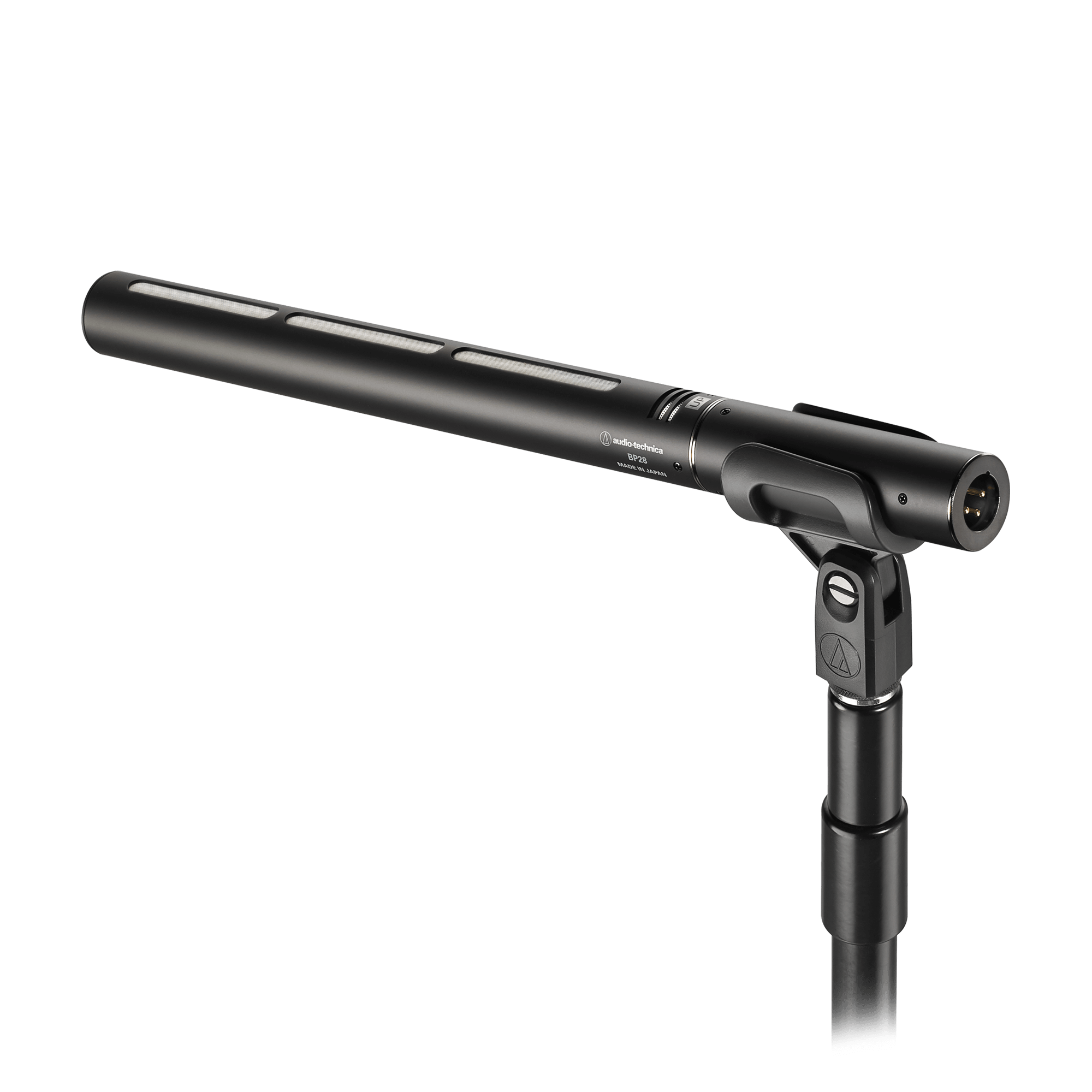 Audio-Technica combines exceptionally low-noise large-diaphragm condenser elements with a shotgun design for extremely tight polar patterns, perfect for long-range sound recordings. With a length of 35.5 cm, the directional BP28 shotgun microphones have been specially designed to meet the needs of broadcast, film, television, recording outdoors and theater applications.
