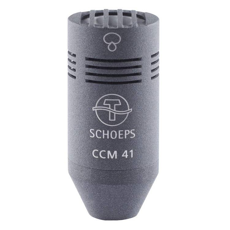 The CCM 41 is strongly directional. Sound arriving from off axis is attenuated even more than with a cardioid. The pickup is “drier” and less susceptible to acoustic feedback than any other SCHOEPS microphone type (a loudspeaker should not be located directly along the rear axis of the microphone, however).
