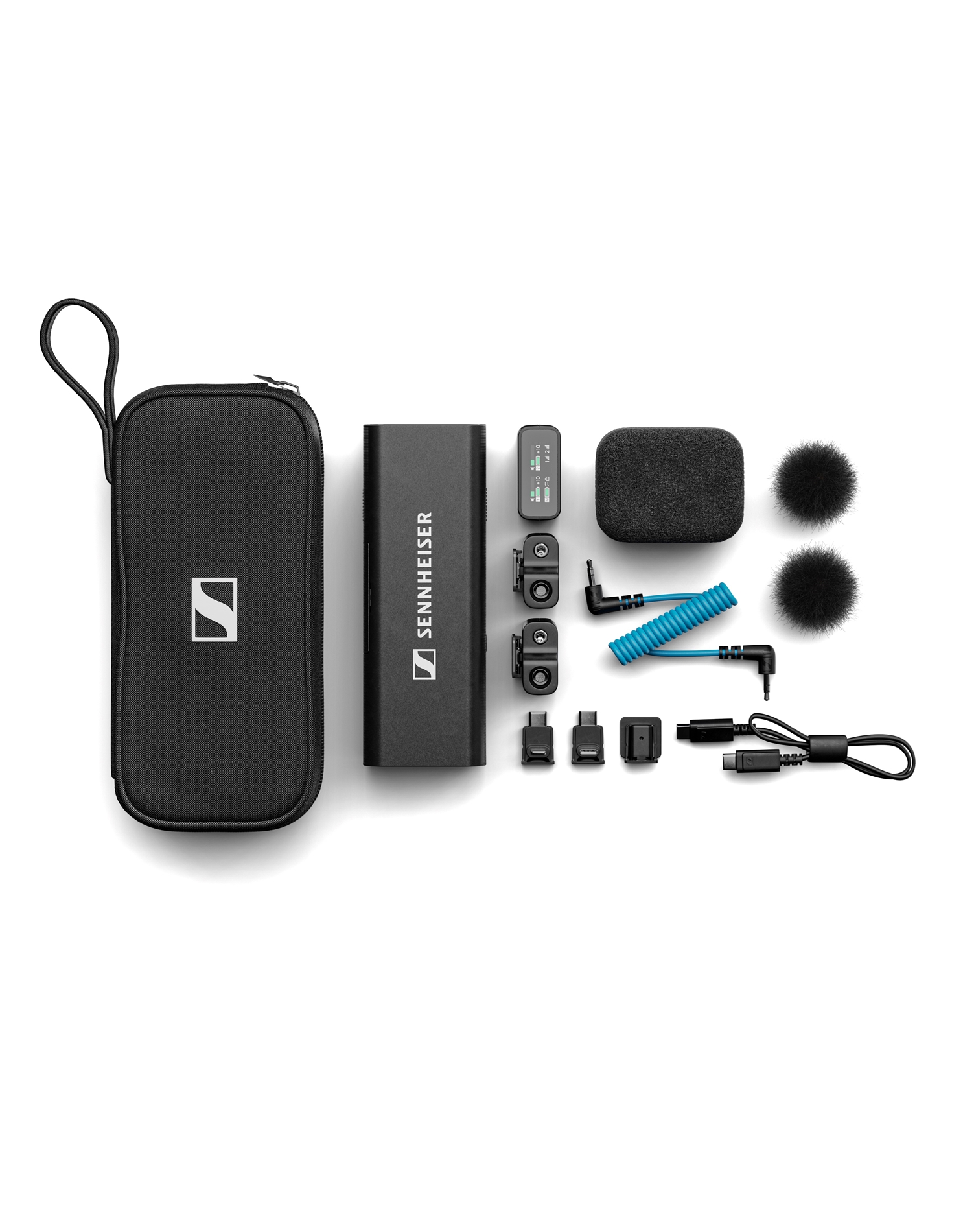 - Όλα σε ένα: περιλαμβάνει δέκτη 2 καναλιών 2,4 GHz, 2 μικρόφωνα με κλιπ, αξεσουάρ, μπάρα φόρτισης και θήκη μεταφοράς
