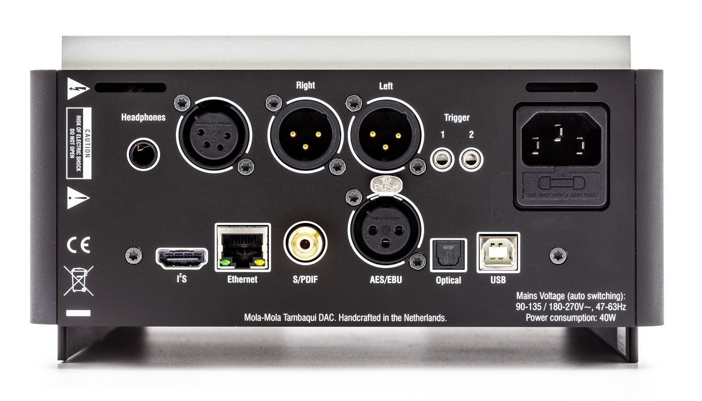 Ο Mola Mola Tambaqui DAC είναι η ιδανική αναβάθμιση για κατόχους high-end συστημάτων που θέλουν να διατηρήσουν τον χαρακτηριστικό ήχο του υπάρχοντος προενισχυτή τους, ενώ ταυτόχρονα αναβαθμίζουν τις ψηφιακές τους πηγές. Ο μετατροπέας αποτελείται από δύο μέρη. Στο πρώτο μέρος, όλα τα εισερχόμενα ψηφιακά σήματα ήχου αναβαθμίζονται σε 3,125MHz/32 bit και μετατρέπονται σε διαμορφωμένο θόρυβο PWM. Στο δεύτερο μέρος, υπάρχουν δύο μονοφωνικοί DAC, όπου ένας DAC 32 σταδίων FIR και ένας μετατροπέας I/V 4ης τάξης με μονό στάδιο φίλτρανσης μετατρέπουν το PWM σε αναλογικό σήμα με εκπληκτικό SNR 130dB. Αυτή η επίδοση πλησιάζει το θεωρητικό όριο για αρχεία 24-bit και ξεπερνά κατά πολύ ακόμα και το quad-speed DSD. Μοναδικά, η παραμόρφωση παραμένει κάτω από το επίπεδο θορύβου ακόμα και για σήματα πλήρους κλίμακας.