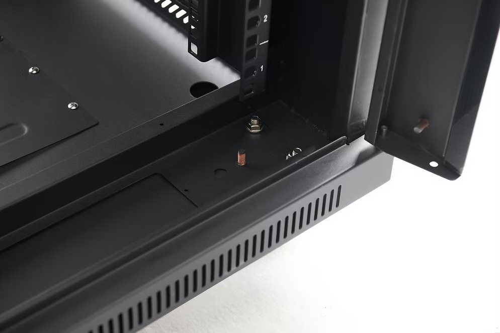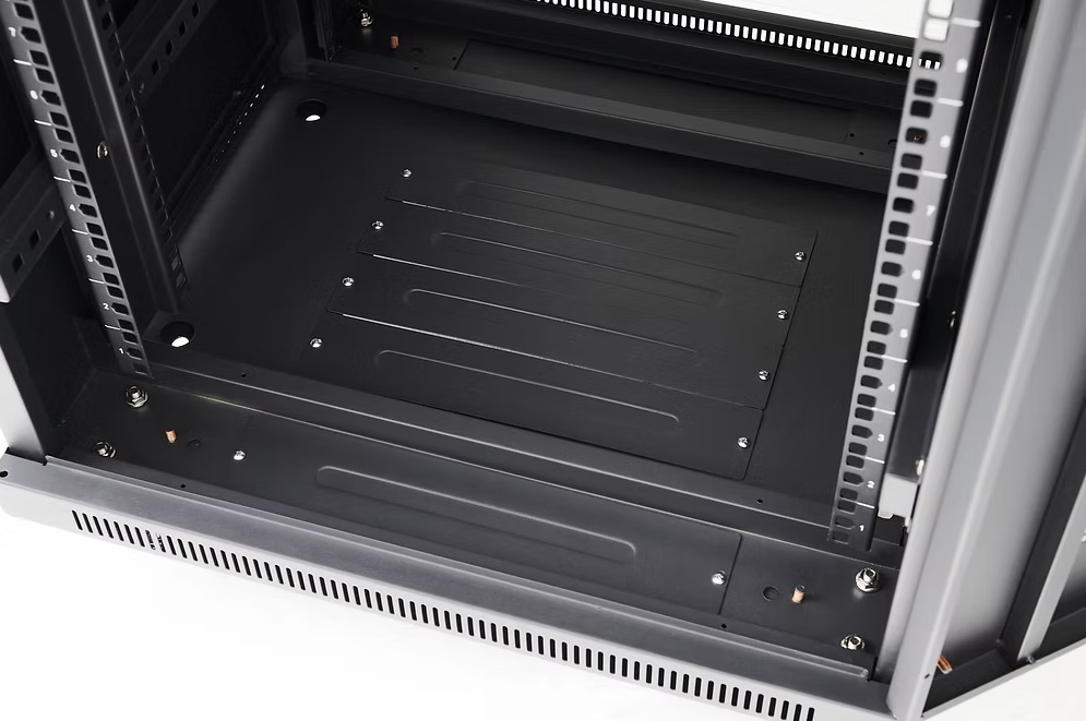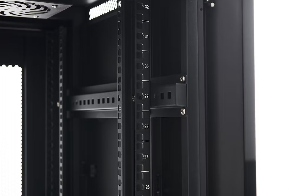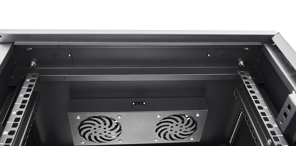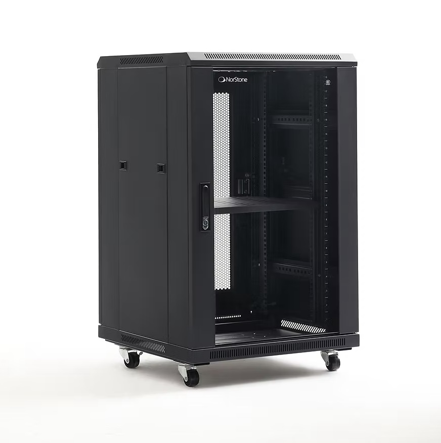 NorStone's 18U - 19“ Rack is a robust, functional storage solution designed to accommodate up to 18 units of 19” equipment. This rack is ideal for professional environments where organization and ventilation of equipment are essential. It features integrated ventilation grilles on the top, including 2 fans for optimal temperature management. Removable side panels facilitate installation and wiring, while perforated square holes allow easy use with clip-on cage nuts. The tempered glass door, equipped with key lock and butterfly handle, offers both security and aesthetics. What's more, the rack is mounted on 80 mm castors and height-adjustable feet for enhanced mobility and stability.