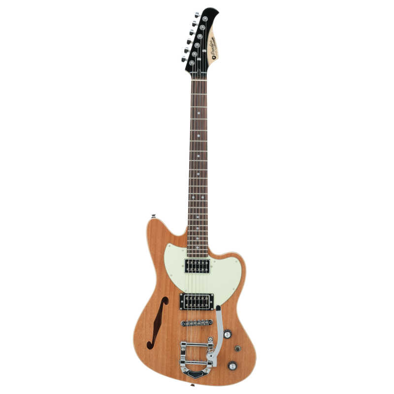 A superb transparent finish, revealing the grain of the Okoume wood, specially selected for this elegant model, making it a favourite with many of the most inventive artists, from jazz guitarists to alternative indie rockers and New Wave...