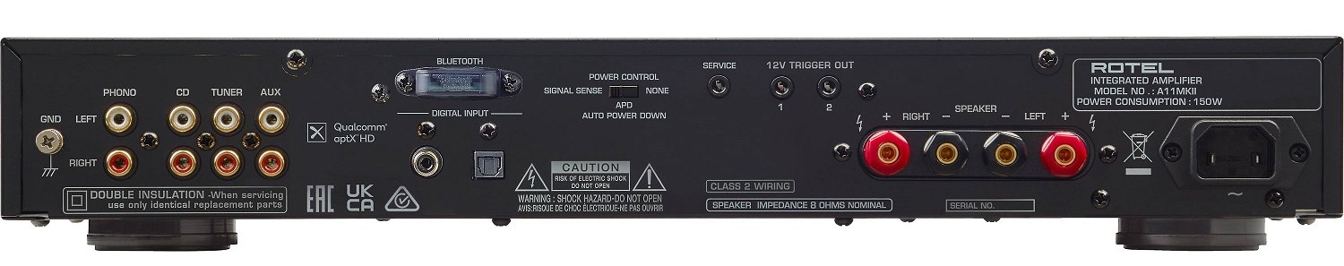 Constructed around a linear power supply featuring a massive Rotel-built toroidal power transformer, the A11MKII delivers an authoritative 50 Watts per channel of Class A/B power into 8 ohms, and even higher power into demanding loudspeakers.