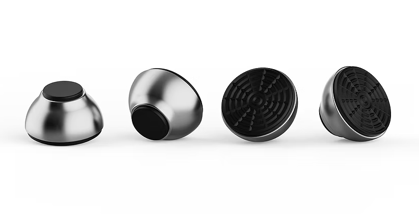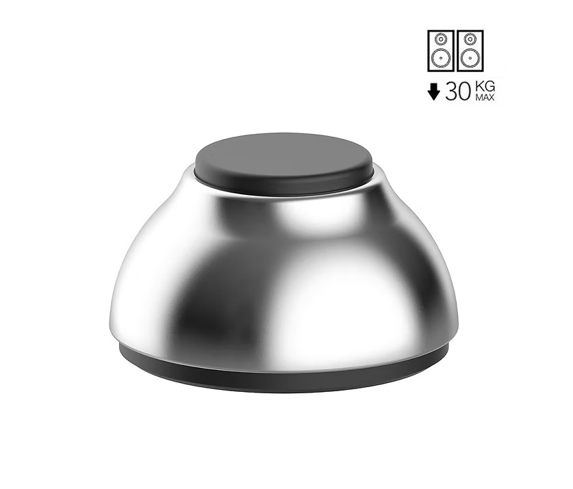 Finished in sand-blasted nickel-plated brass, the Acousteel Damp 100 is also an elegant design object that blends perfectly into any high-end audio environment. Its robust structure, made of brass and silicone rubber, guarantees exceptional durability while providing optimum isolation.