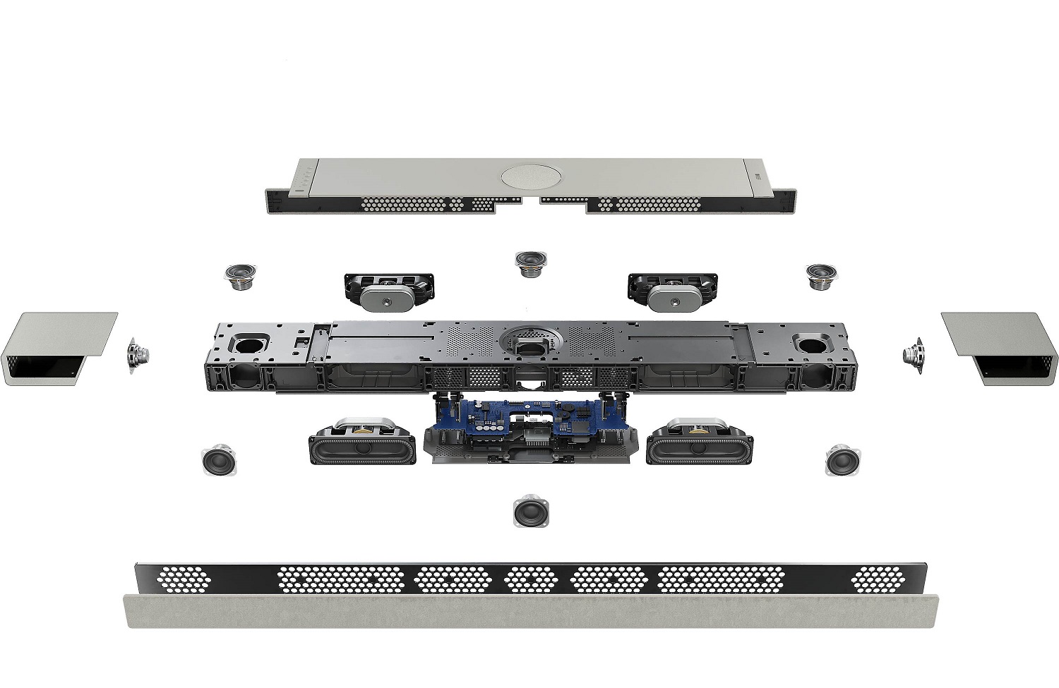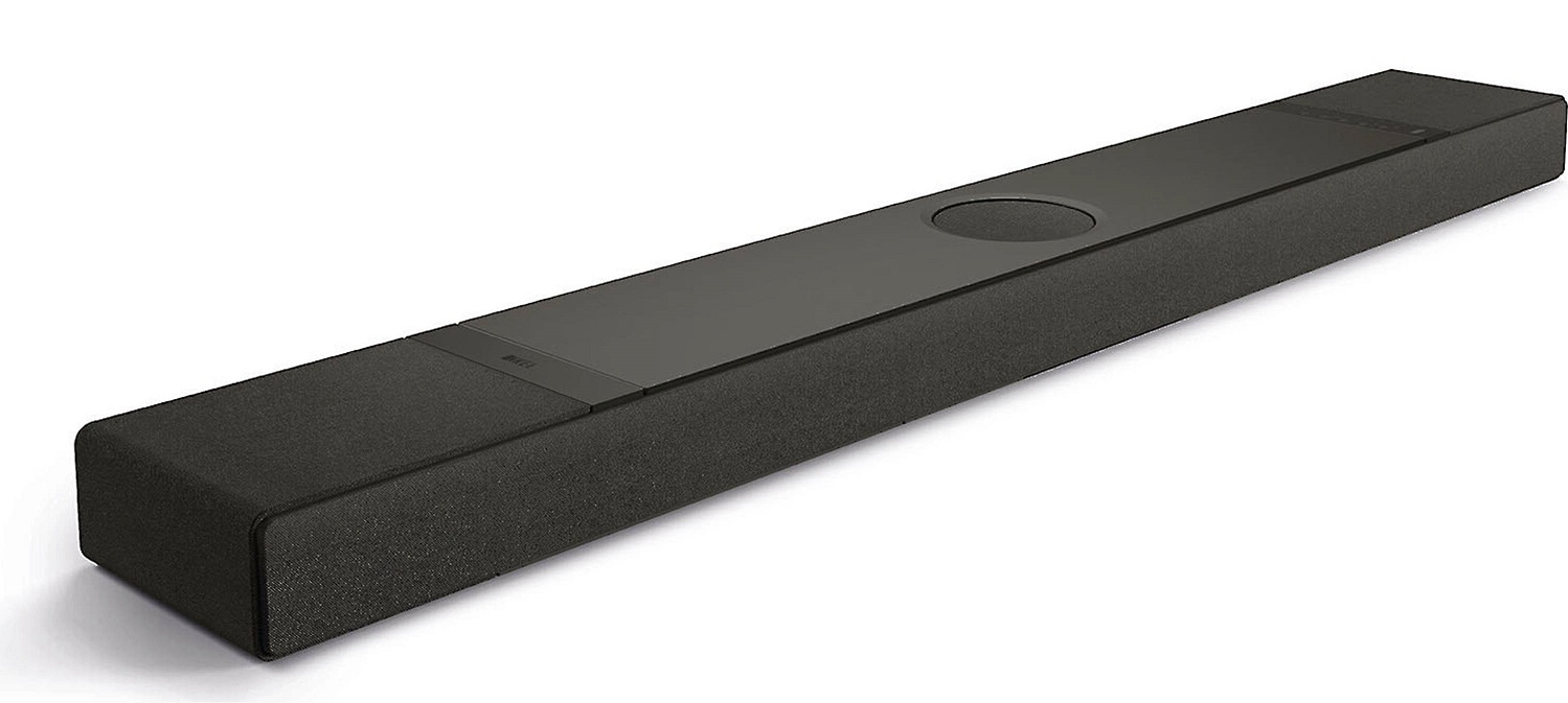 - 5.1.2-channel sound bar with integrated subwoofers for impactful bass