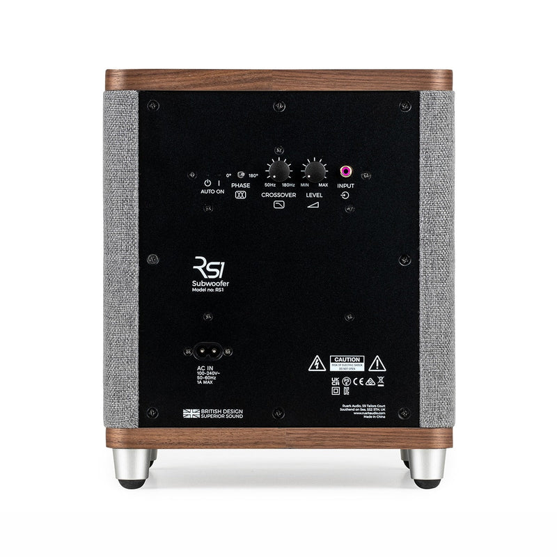 - Box contains RS1 subwoofer, mains lead, 1.5m RCA connector lead and quick start guide