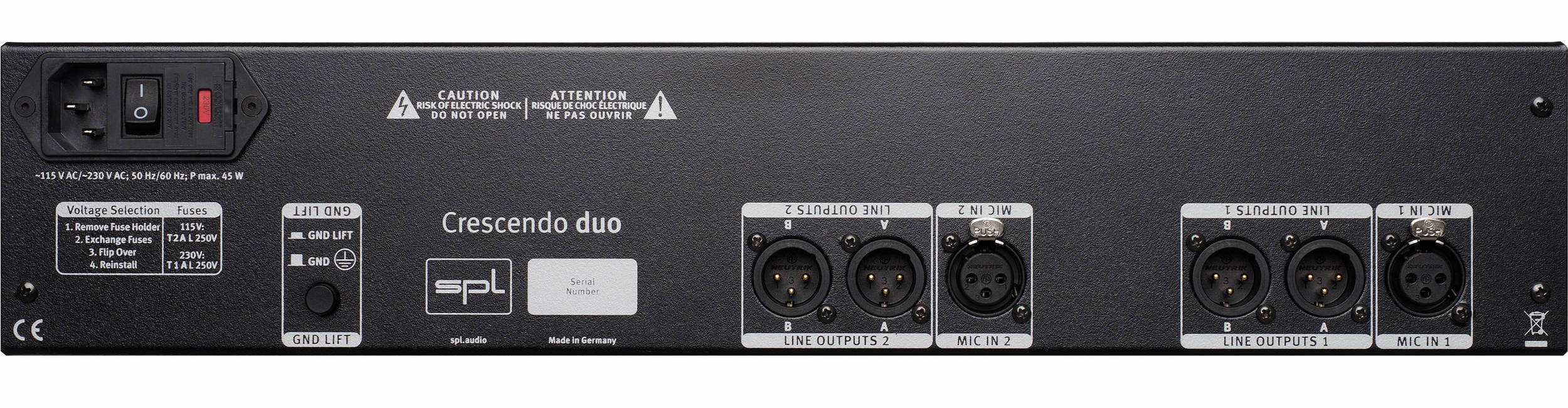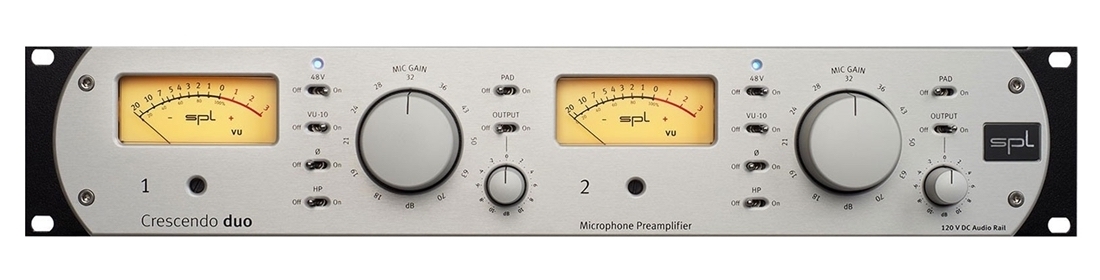 With the Crescendo duo, we are expanding our 120V microphone preamp portfolio with a dual-channel version of the Crescendo.
