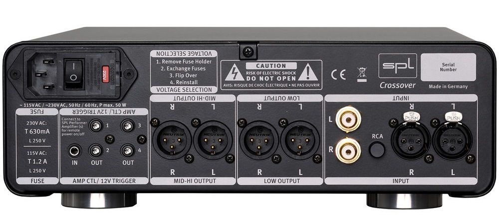 Practical are the AMP CTL sockets, to which up to four power amplifiers with 12 V trigger inputs can be connected to switch them on and off together with the crossover.