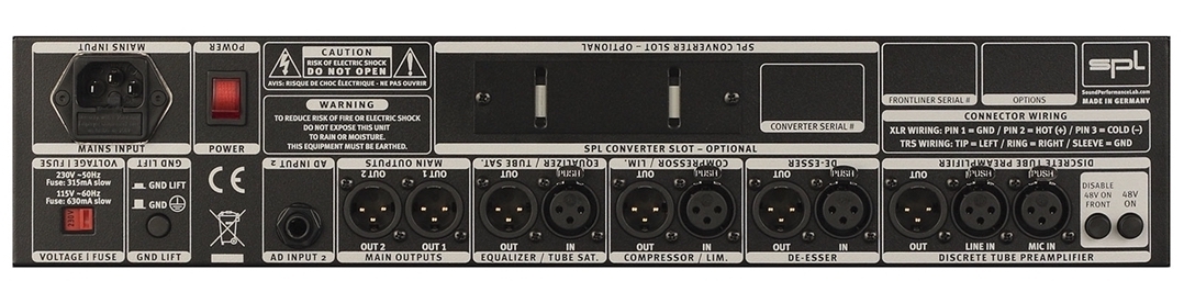 - Frequency range (Tube Gain +6 dB, -3 dB): 20 Hz – 45 kHz