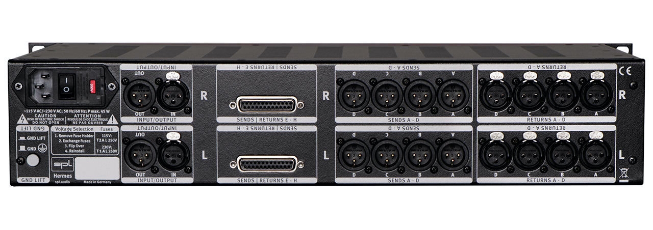 The inserts are connected with XLRs for the first four stereo processors and with DB25 for the second four stereo processors.