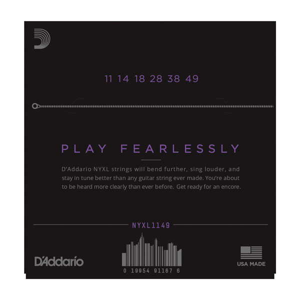 Χορδές ηλεκτρικής κιθάρας NYXL με καινοτόμο συνδυασμό από επινικελωμένο σύρμα τοποθετημένο πάνω σε ατσάλινο πυρήνα που παρέχει ευρύ δυναμικό εύρος και κορυφαία αρμονική απόκριση. Πάχος χορδών 0.11-0.14-0.18-0.28-0.38-0.49