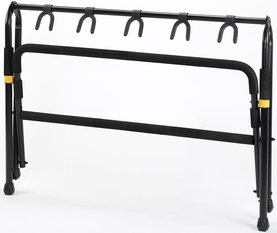 Πενταπλή βάση κιθάρας αναδιπλούμενη, για οποιοδήποτε τύπο κιθάρας (ηλεκτρική, κλασική, ακουστική) με επικάλυψη από αφρώδες καουτσούκ για αποφυγή χτυπημάτων - γρατζουνιών. Ιδανική για stage, live και στούντιο ηχογράφησης καθώς και κιθαρίστες που έχουν μεγάλη γκάμα κιθαρών.