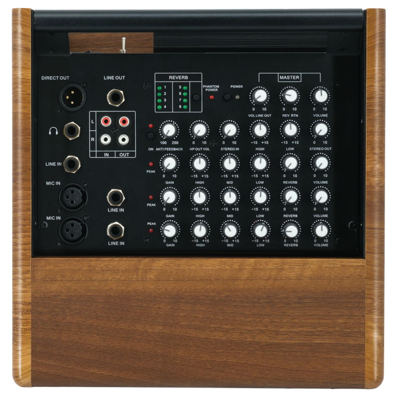 The Natural 6 V2 Walnut Wood features a full-featured integrated mixer: