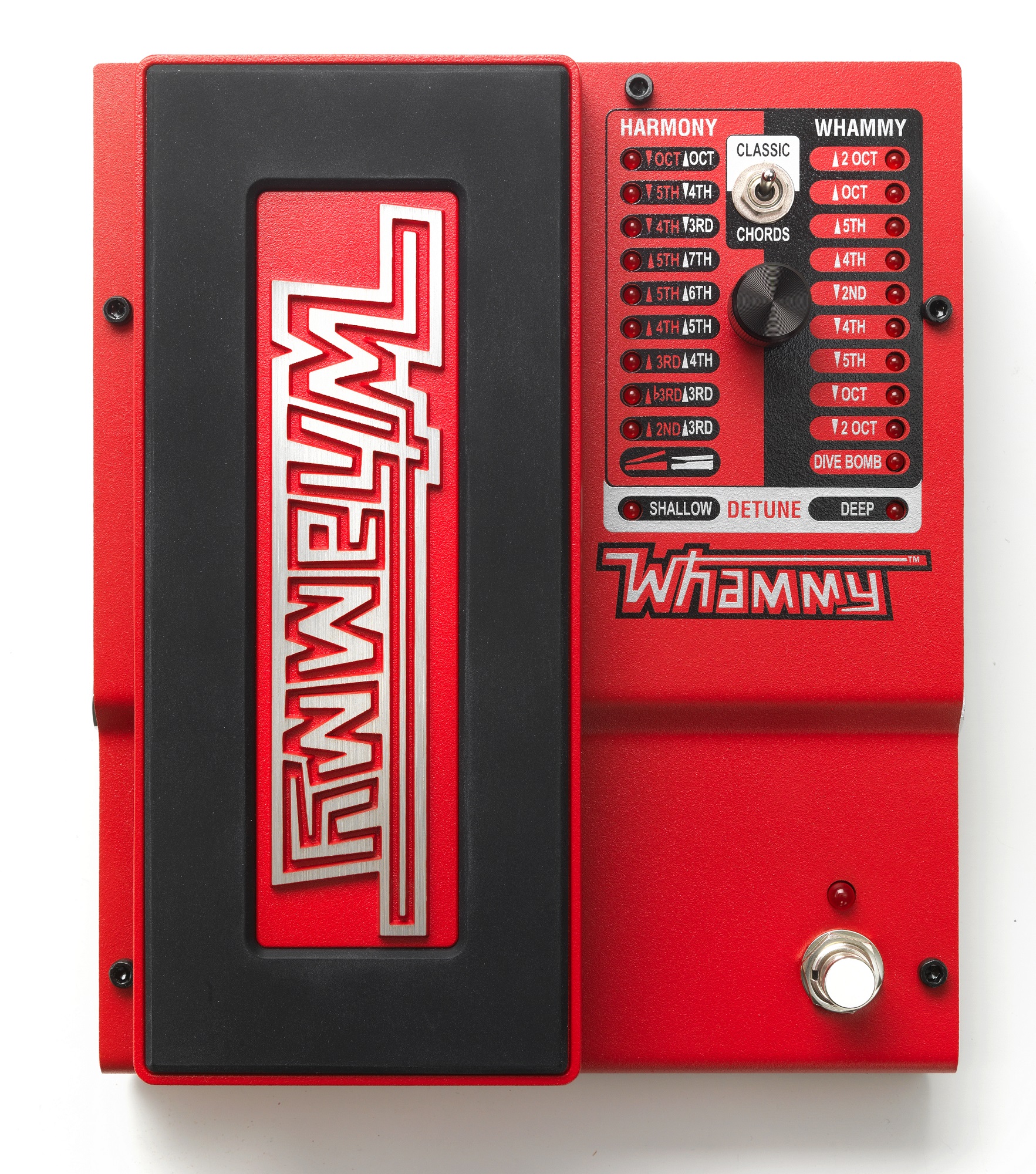 Πετάλι πέμπτης γενιάς WHAMMY V με preset ήχους και λειτουργίες Shift Down και Shift Up, 10 presets whammy, 9 presets harmony, 2 presets detune, διακόπτης classic και chord, dive bomb εφφέ, midi input για remote χρήση, λειτουργία true bypass, μεταλλικό σασί, περιλαμβάνει μετασχηματιστή.