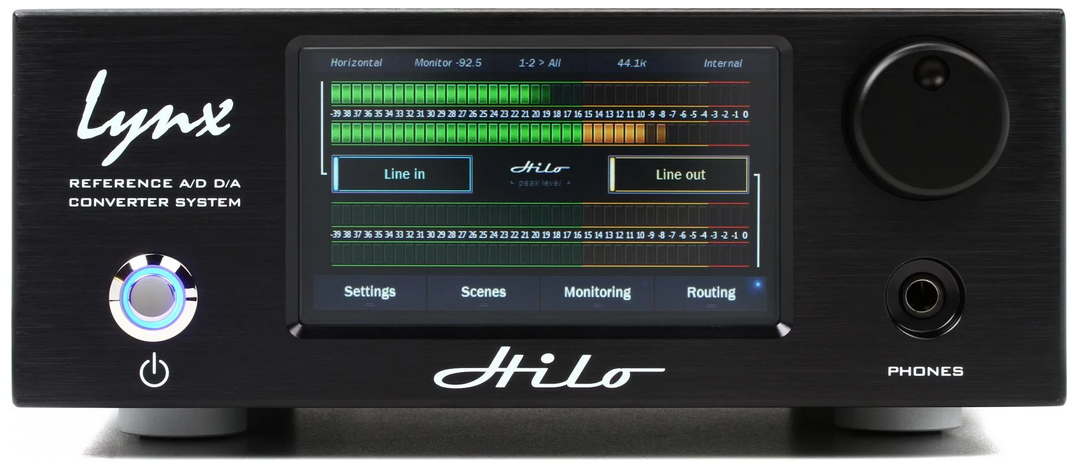 Ψηφιακό-αναλογικό μετατροπέας αναφοράς. Διαθέτει την εξαιρετική, διαφανή ποιότητα ήχου για τις οποίες είναι γνωστή η Lynx, το Hilo (προφέρεται Χί-λο-ου) παρέχει δύο κανάλια μετατροπής από αναλογικό σε ψηφιακό σήμα, έως και οκτώ κανάλια μετατροπής από ψηφιακό σε αναλογικό σήμα, μια δευτερεύουσα έξοδο monitor, και ένα παγκόσμιας κλάσης ανεξάρτητο ενισχυτή ακουστικών σε συμπαγές μέγεθοςhalf-rack. Το Hilo καινοτομεί στον τομέα των επαγγελματικών δικάναλων μετατροπέων, λανσάροντας οθόνη αφής 480 x 272, προσφέροντας έτσι ένα ευέλικτο και έξυπνο περιβάλλον εργασίας που μπορεί να προσαρμοστεί σε κάθε εφαρμογή και να αναβαθμιστεί εύκολα με βελτιώσεις και νέα χαρακτηριστικά. ΤοHilo διαθέτει λειτουργία διαγνωστικών όπου ο χρήστης μπορεί να ρυθμίσει παραμέτρους όπως δυνατότητες δρομολόγησης σήματος, επιλογή συχνότητας δειγματοληψίας, επιλογή πηγής ρολογιού, ρύθμισης στάθμης, επιλογή τύπου οργάνου.