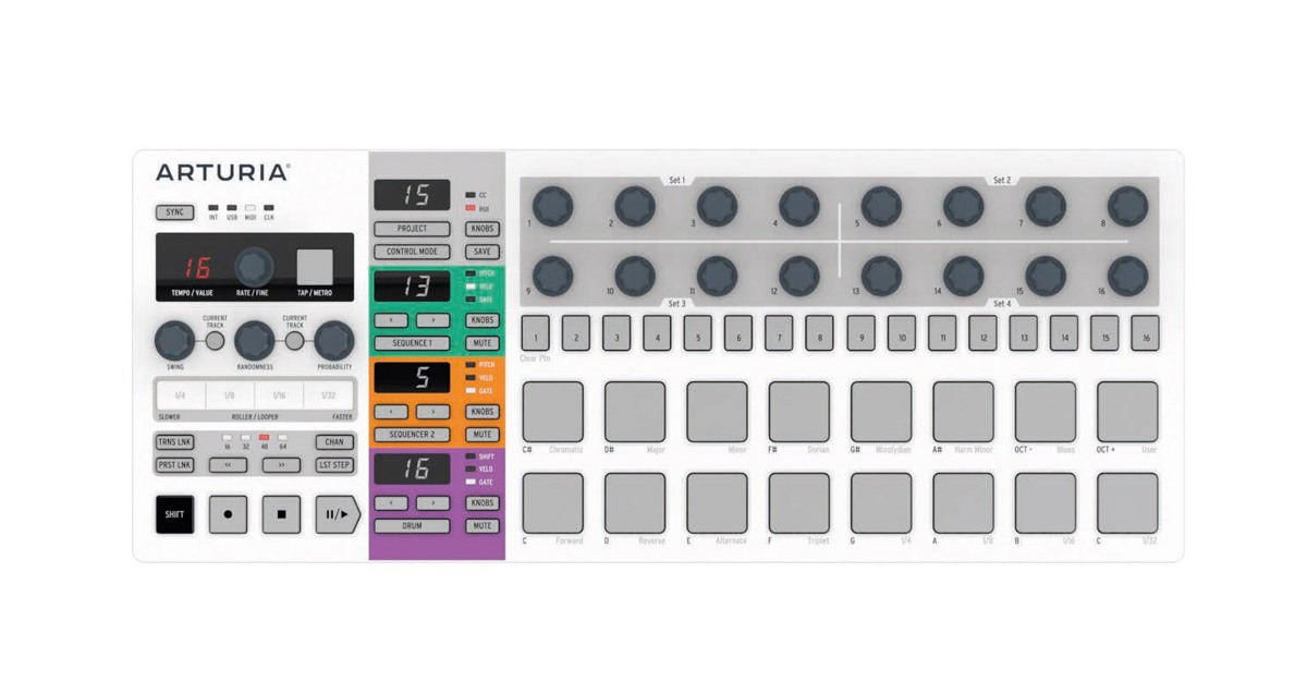 With BeatStep Pro you are master of the performance, taking full control of virtual devices, analog and digital instruments, drum machines and iPad apps all at once. 16 Projects are instantly accessible, each of which contains 16 sequences per melodic sequencer and 16 patterns for the drum sequencer. That’s over 4000 possible combinations per Project!