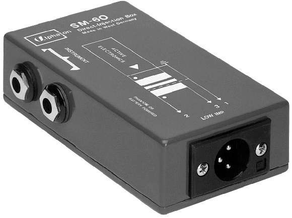 Ενεργό D.I. BOX με Phantom Power και μπαταρία. Είσοδοι: 2Χ ¼’’ Phone Jack Unbalanced (η μια χρησιμοποιείτε σαν έξοδο για ενισχυτή μουσικών οργάνων) και έξοδο: XLR, Balanced.
