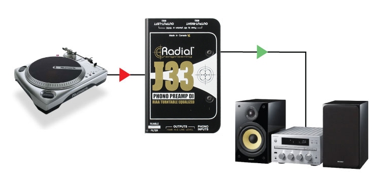 The Radial J33 is a combination phono preamplifier and purpose built stereo direct box made to handle the rigors of the professional recording studio and the abusive environment of live touring. But don't let the tough exterior fool you… the J33's sonic performance will easily surpass many audiophile preamps costing much more. The Radial J33, a high performance turntable preamp that is ideally suited for music playback, archiving, DJing and sampling.
