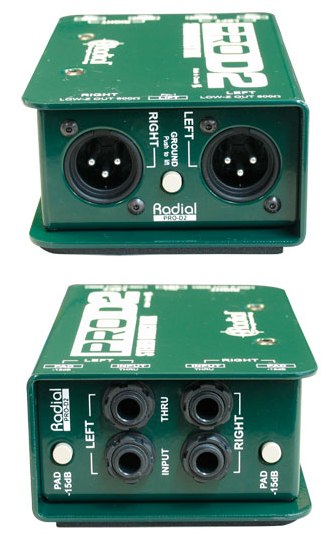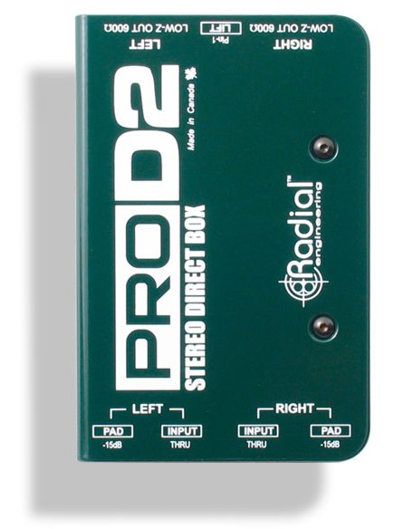 Radial Pro D2 - παθητικό stereo DI box με 2 ξεχωριστά Pro DI κανάλια, -15dB pad, διακόπτη ground lift , jack in / out, XLR out, απόκριση συχνότητας: 20Hz-18kHz, ιδανικό για keyboards, drum machines και digital recorders.