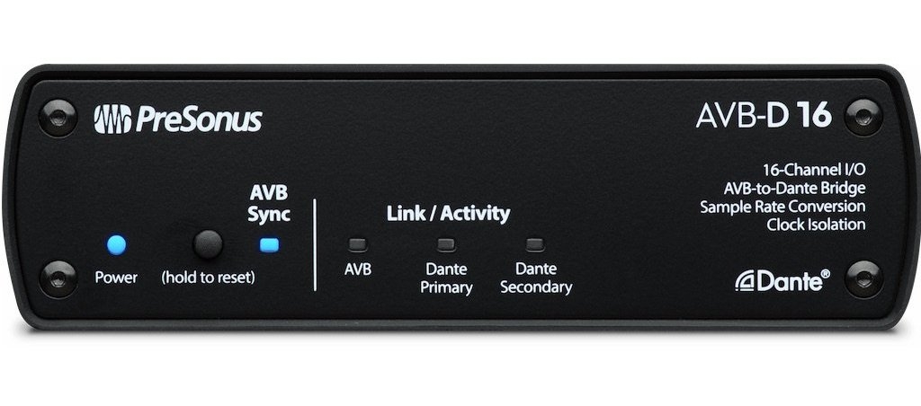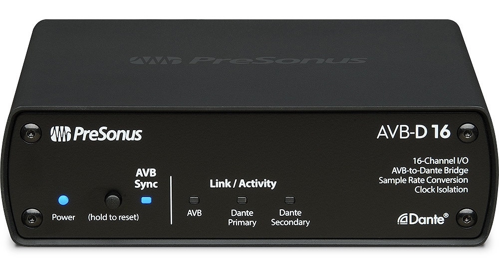 The PreSonus AVB-D16 is the first plug-and-play endpoint that bridges AVB and Dante™ networks. Now you can send and receive up to 16 audio channels between an AVB and Dante network with one simple device, making it the perfect solution to connect your StudioLive Series III AVB ecosystem to your favorite Dante-equipped products like the PreSonus CDL-12 constant directivity loudspeaker. Built-in Asynchronous Sample Rate Conversion ensures that the AVB-D16 provides precision clock isolation between your AVB and Dante networks for pristine, clear audio with no dropouts or artifacts.