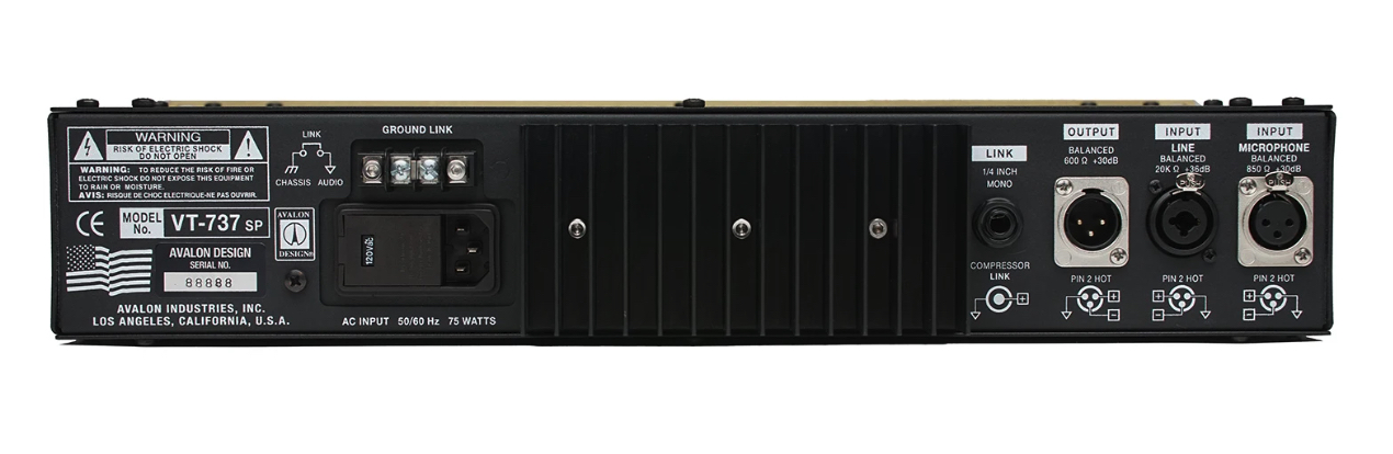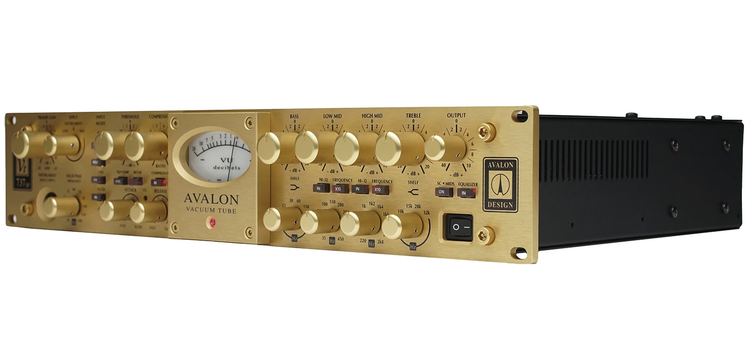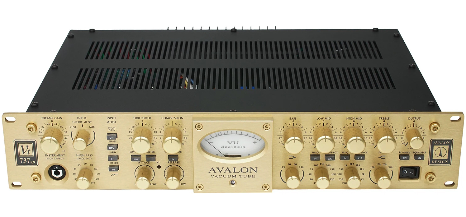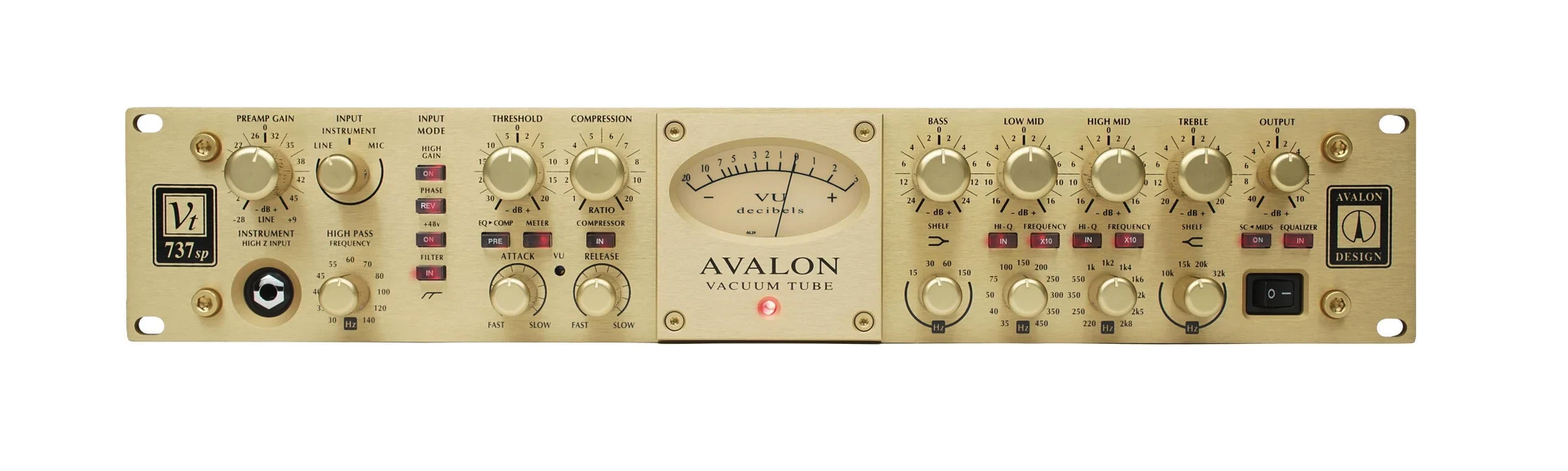 The Avalon VT-737SP is a channel strip featuring a combination of tube preamplifiers, opto compressor, sweep equalizer, output level and VU metering in a 2U space.