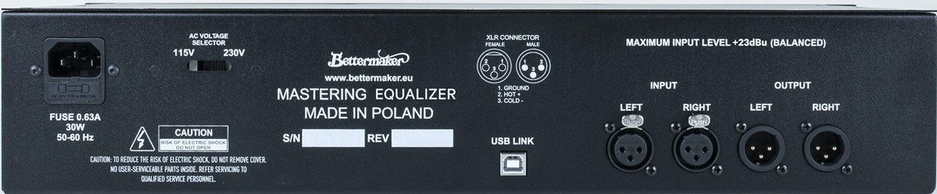 The Bettermaker Mastering Equalizer can communicate with your DAW via USB connection. The unit appear as a HID device and can be managed via Bettermaker Mastering Equalizer Plugin.