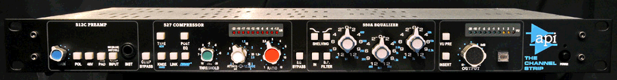 Ο προενισχυτής είναι ο φημισμένος 512c, ο οποίος δέχεται -πέρα από μικρόφωνα- και line και instrument level σήματα. Ο κομπρέσσορας είναι ο 527, ο οποίος δίνει πλήρη έλεγχο για Threshold, Attack, Release, και Ratio.Το πατενταρισμένο κύκλωμα THRUST® στον 527 δίνει το "in-your-face" punch ήχο για το οποίο έχει πολυβραβευτεί. Το equalizer είναι το πιο γνωστό της API όλων των εποχών, το 550Α three-band Equalizer με τις μουσικά προεπιλεγμένες συχνότητες και 12db boost ή cut.Οι μπάντες των ψηλών και των χαμηλών λειτουργούν και σαν shelving, ενώ το κουμπί "B.P. Filter" ενεργοποιεί ένα bandpass φίλτρο από 50 έως 15.000 Hz. Στην έξοδο του Channel Strip βρίσκεται ο 325 Line Driver.