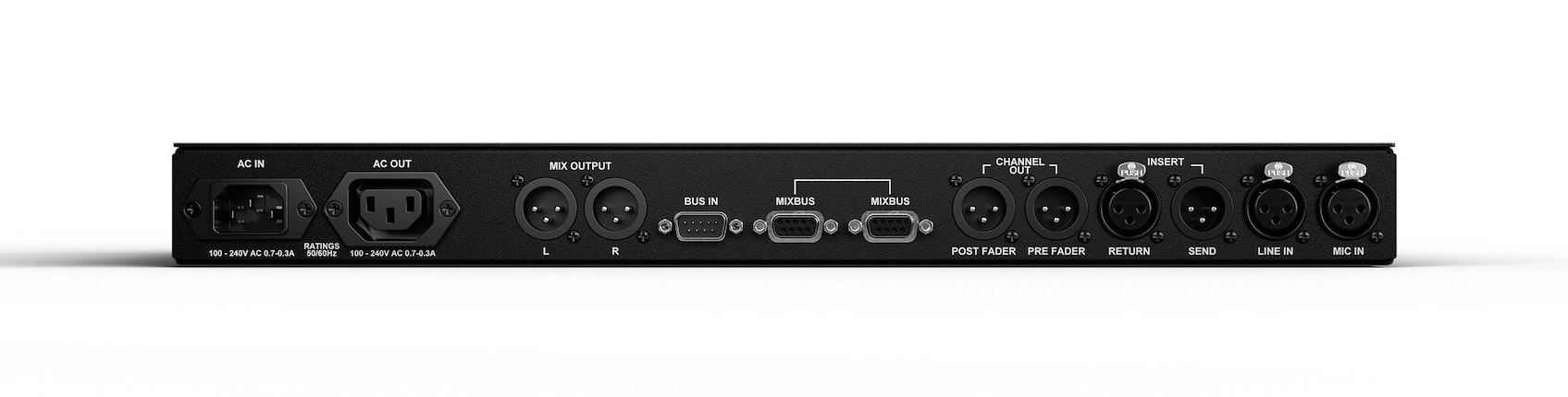 - Controls for fader, panorama, mix bus out and 0 dB button