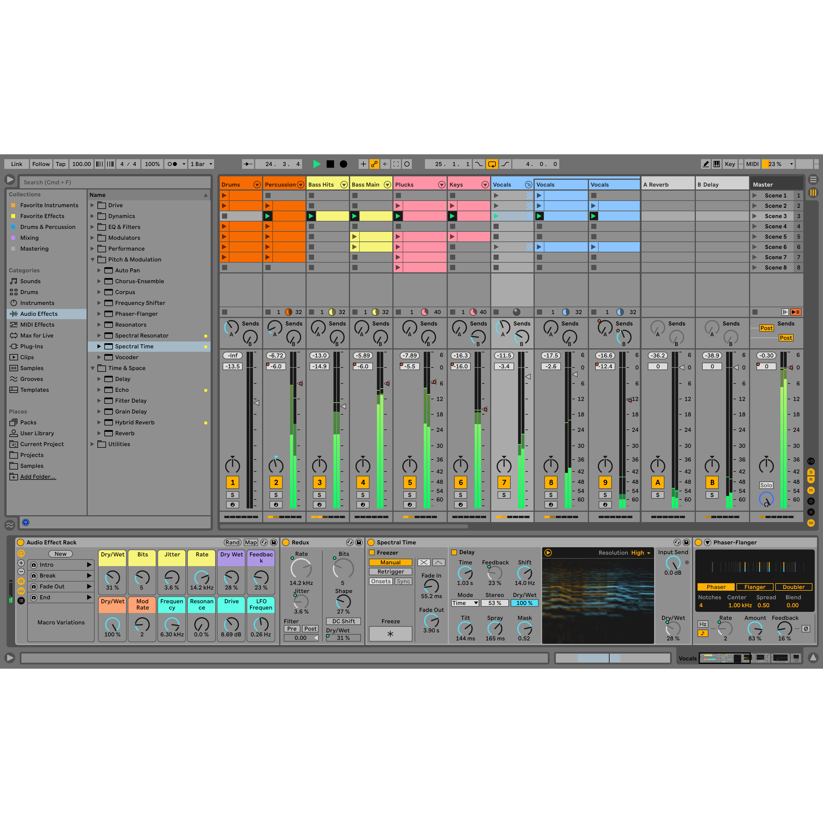 From MPE-capable sound shaping to expressive granular textures to colorful saturation, Live 12 Suite expands the kind of music you can make right out of the box. Further, you get a new modulation behavior that will turbocharge your workflows with more performance options and continuous real-time parameter control.