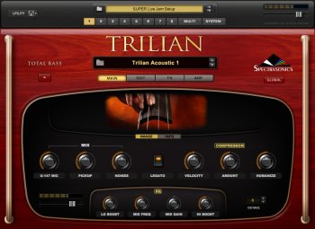 Χρησιμοποιώντας 64bit audio μηχανή και την τεχνολογία STEAM όπως και στο Omnisphere, η Spectrasonics εξοπλίζει το πολυαναμενόμενο Trilian με βιβλιοθήκη ήχων μπάσου 34Gb!! που περιέχει κάθε λογής μπάσο, ακουστικά, ηλεκτρικά, άταστα, synth καθώς και πολλά από τα κλασσικά μπάσα που περιείχε ο προκάτοχος του Trilian, το Trilogy. Διαθέτει ρεαλιστικό τρόπο παιξίματος με όλα τα πιθανά articulations (staccato, legato, sustain, vibrato, slide up, slide down, slide up & down, harmonics, FX squeaks) με πολλαπλά επίπεδα δυναμικής, Arpeggiator με Groove Lock (για άψογο συγχρονισμό με MIDI files ή με το Stylus RMX), περιλαμβάνει όλα τα εφφέ που έχει και το Omnisphere (συνολικά 32 επεξεργαστές εφφέ μεταξύ των οποίων και reverb, EQ, compressors, delays και πολλά άλλα), είναι 8 κανάλια multitimbral.
