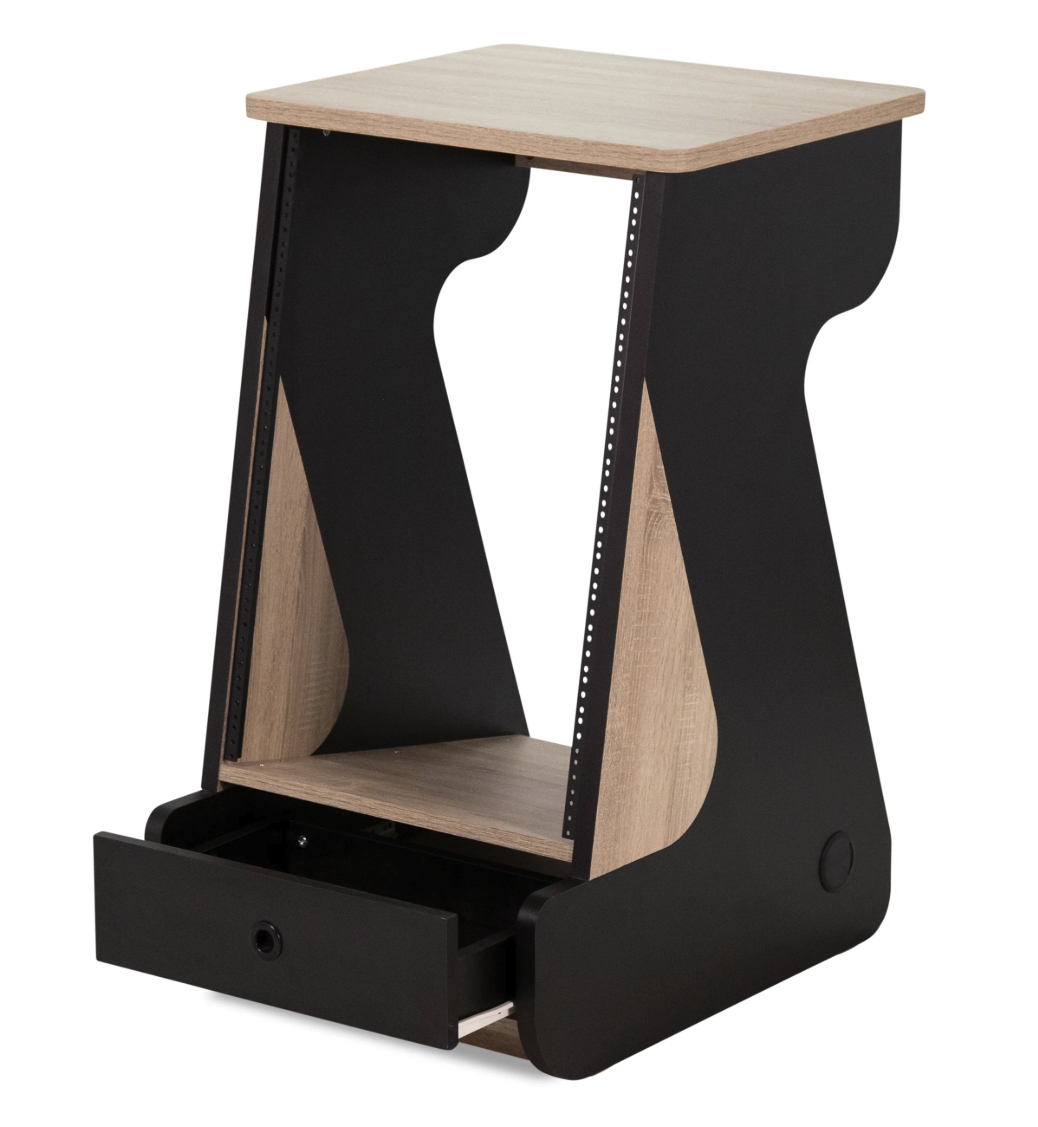 With the MIZA Rack 16, MKII Zaor offers a side rack with space for 16 height units with a practical sliding cabinet matching the Miza studio furniture series.