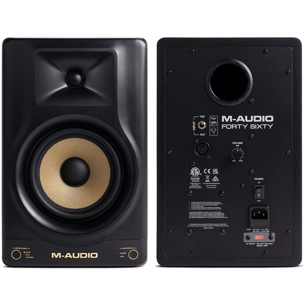 • 100 watts bi-amplified, rear-ported design • 6.5” extended bass response Kevlar woofer • 1” high-frequency drivers with waveguide • Professional-Grade Burr-Brown A-D Converter • Precision DSP internal Crossover and EQ • Instant front panel FLAT and HYPE reference modes • Bluetooth 5.3 TWS stereo wireless audio streaming • M-Audio Forty Series Control App for custom equalization and presets • Rear Panel trim control • XLR and TRS analog inputs