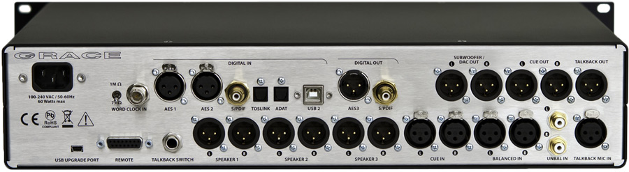 Included are all requisite professional audio inputs and outputs, both analog and digital, with an asynchronous USB input for jitter free 24/192 computer playback. Outputs include 3 stereo speaker sets, two subwoofer, and our reference headphone amplifier.