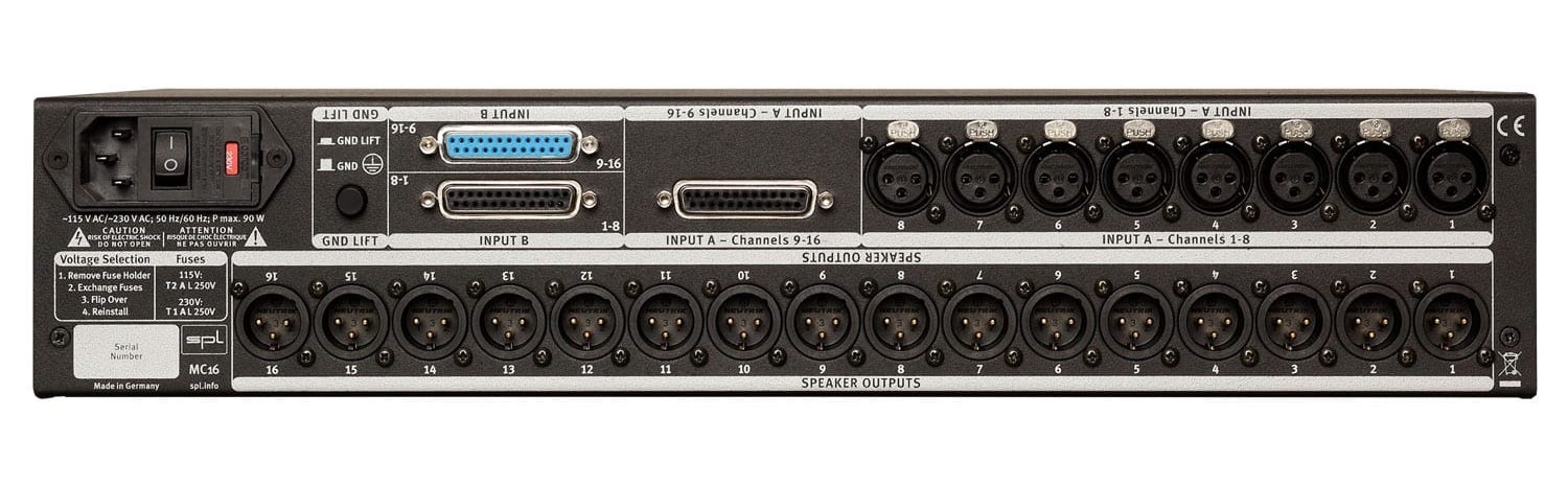 The MC16 is designed to monitor surround and immersive audio projects (Dolby Atmos®, Auro 3D®, etc…) in the analog domain, offering the same unrivalled quality as 120V stereo monitoring.