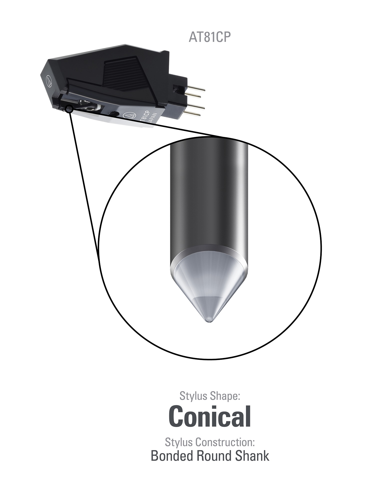 Κεφαλή για πικάπ με κεφαλές P-MOUNT Dual Moving Magnet με κωνική ακίδα της βελόνας.Η AT81CP επιτρέπει στους κατόχους των Technics ™, Hitachi ™, Pioneer ™ * και παρόμοιων πικάπ με υποδοχές T4P να απολαμβάνουν τον ήχο υψηλής πιστότητας που μπορεί να προσφέρει μόνο η Audio-Technica.