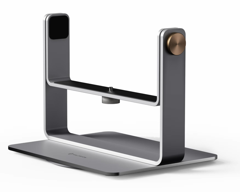 The DGS-01 stand is distinguished by its high-quality alloy aluminum construction, providing both lightness and strength. Its “space gray” finish allows it to blend discreetly into any environment, whether a modern living room or a professional office. The stand’s compact dimensions make it easy to install on most flat surfaces without taking up unnecessary space.