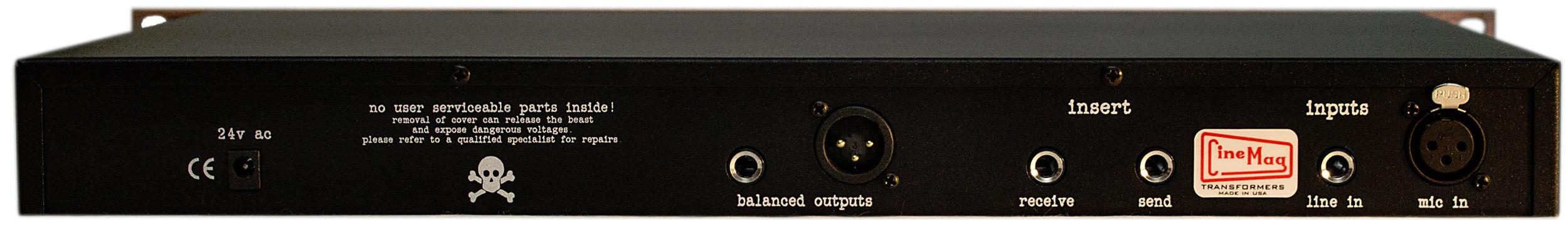 - 2 Meg Ohm True HI-Z input on front panel sends instrument signal through entire circuit including both Cinemag Transformers and the discrete operational amplifier. Great for guitars, bass, keyboards and other instruments that have a 1/4″ output jack.