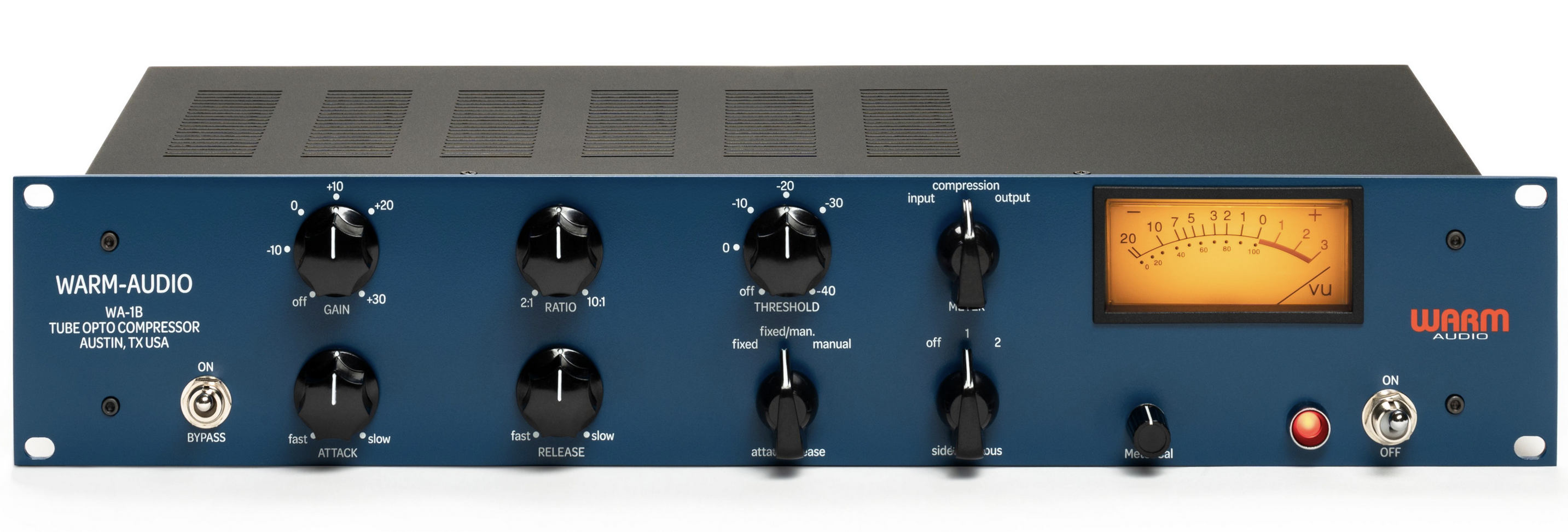 The WA-1B compressor delivers a signature Scandinavian style of compression renowned for its exceptional analog performance with modern features. Delivering the sonic versatility of the original, the WA-1B spans pristine, transparent compression that maintains the clarity of audio sources to delivering rich and harmonically saturated tones when the tubes are driven to saturation. Ready to take recordings to the next level, the WA-1B has all of the key controls normally absent from more vintage optical compressors. Using the threshold, ratio, attack, release, and makeup gain controls allows for precise dynamic control and tone shaping without sacrificing vintage tube-optical tone. The controllable attack time with faster available speeds and program-dependent release controls contribute to the very forgiving character of the compressor.