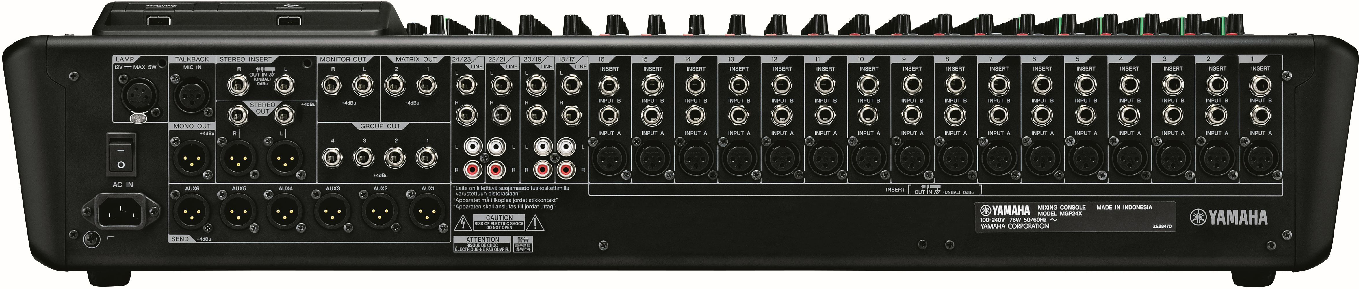 - Mixing channels: 24 Line Inputs (16 mono and 4 stereo)