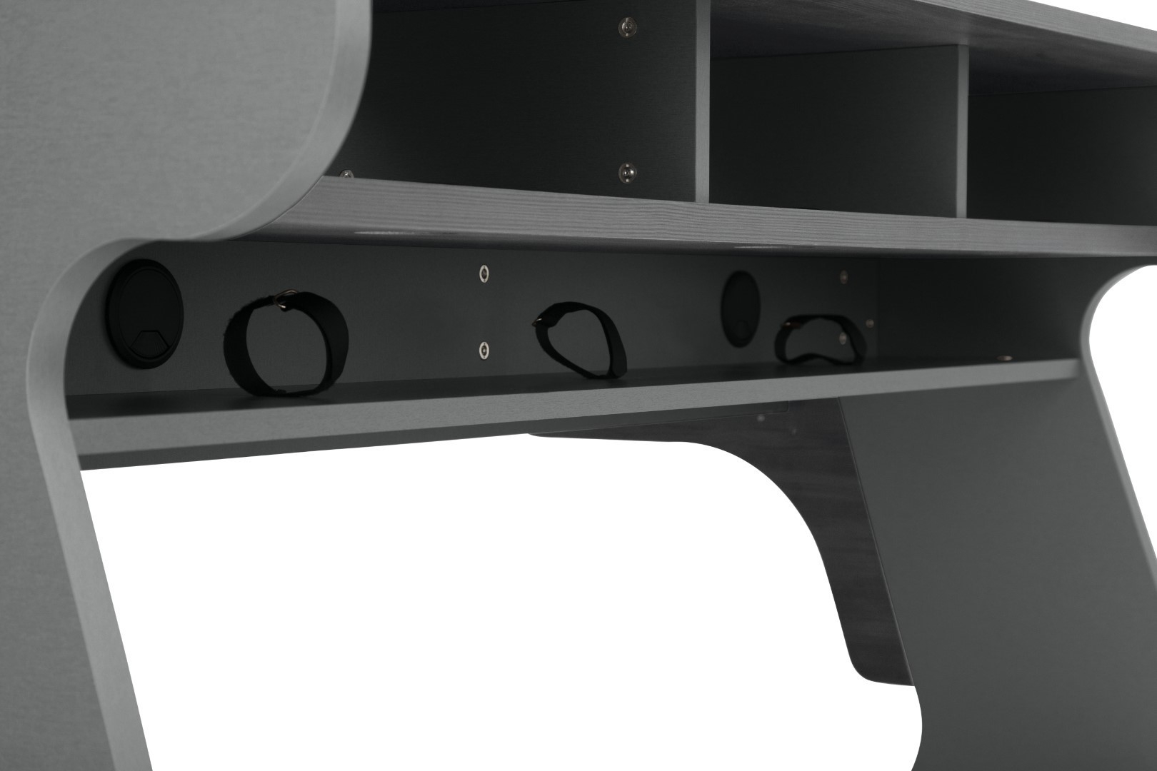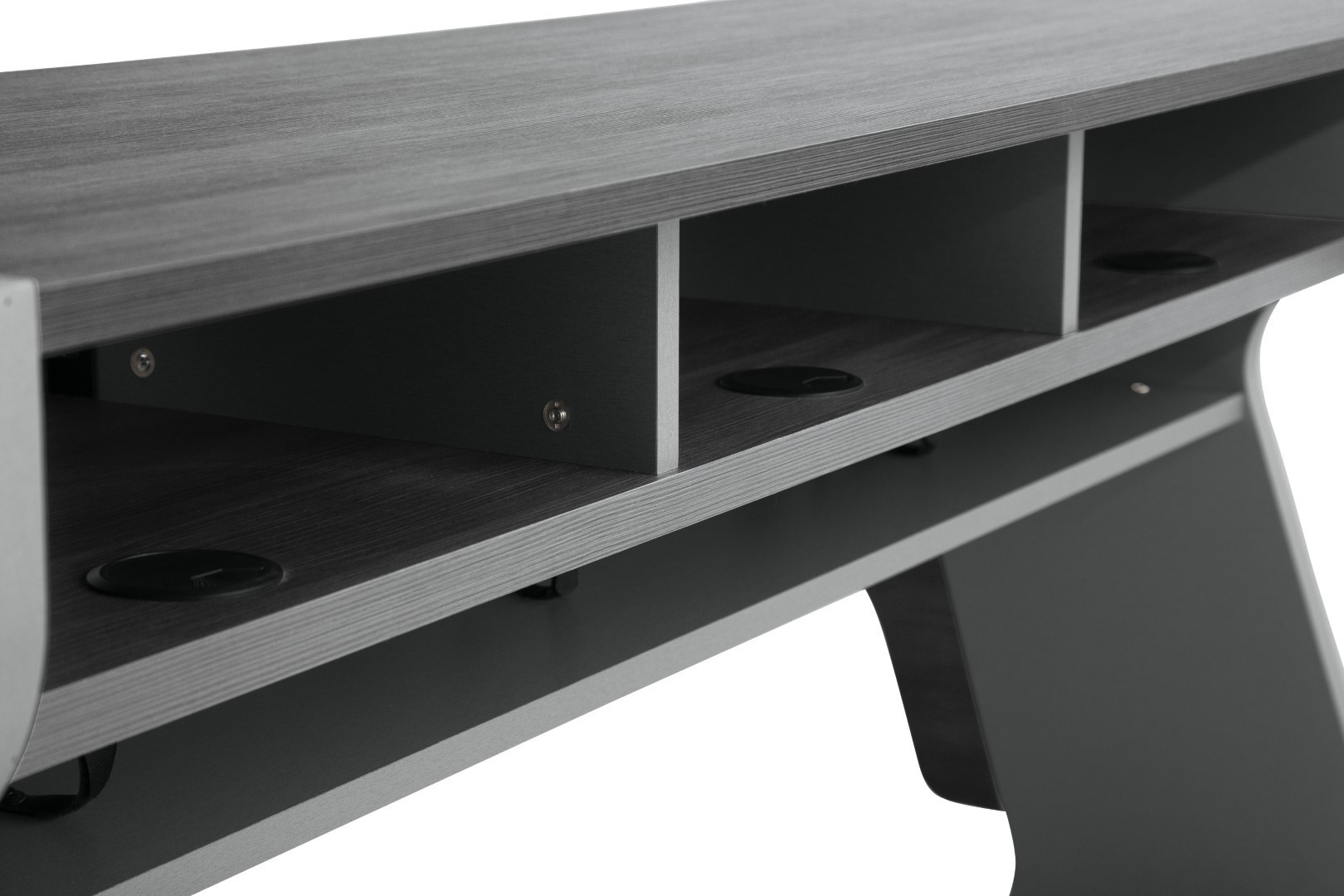 The top shelf above the racks allows you to set up your computer screen or even smaller monitor speakers. The updated and now even more convenient cable management keeps all your wires under control for that tidy, almost magical look and feel. This is your instrument bay. You are home.