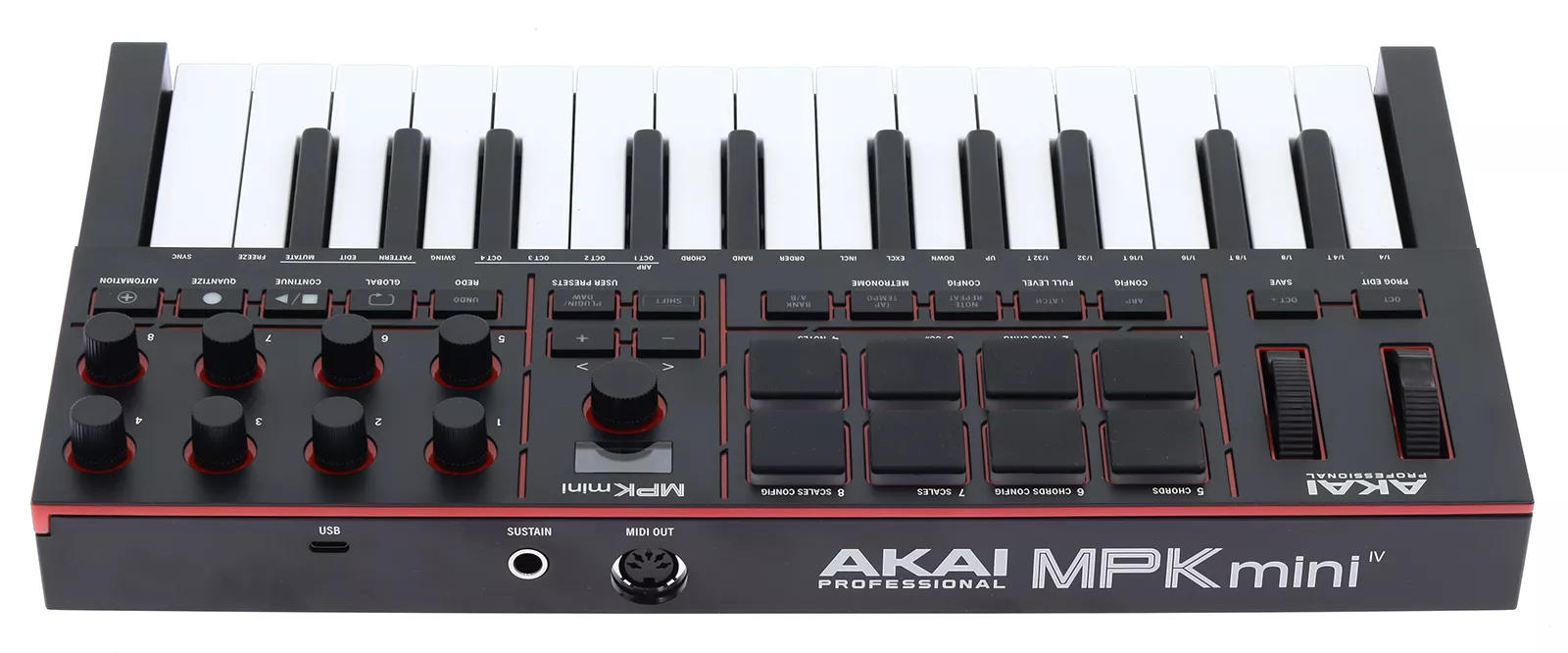 With USB-C connectivity, a full-size MIDI output, and plug-and-play integration with major DAWs (Ableton Live, Logic Pro, FL Studio, Bitwig, and Cubase), MPK Mini IV is a flexible studio companion for the next generation of creatives.